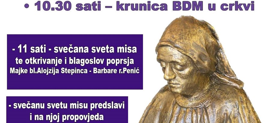 Nakon proslave rođendana blaženog Alojzija Stepinca u župi Krašić svibanj je i dalje u znaku značajnih događanja. Sutra, na sam Majčin dan bit će blagoslovljena bista Barbare Stepinac, rođene Penić,i to prije svete mise u 11 sati, kod kapele u Brezariću.