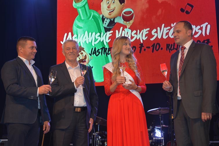 Pjenušac vinarije Korak, vrhunske kvalitete, na pozornici su zajedno kušali potpredsjednik Sabora, gradonačelnik, župan i vinska kraljica čime su i službeno otvorene Jaskanske vinske svečanosti.