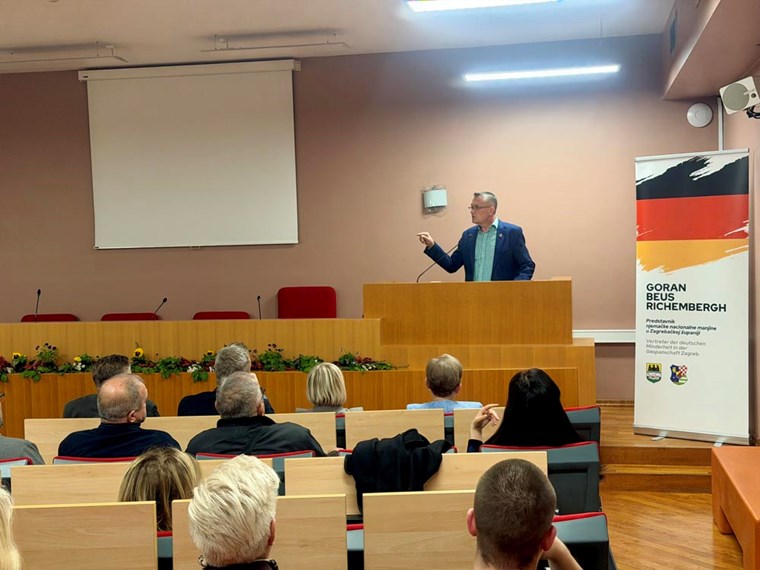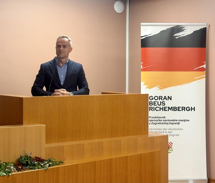 Beus Richembergh je okupljenima približio malo poznato poglavlje domaće povijesti, od dolaska njemačkih obitelji na ove prostore, njihova doprinosa industrijskom, kulturnom i znanstvenom razvoju Hrvatske, pa sve do teških godina nakon Drugog svjetskog rata kada su tisuće pripadnika njemačke manjine protjerane, raseljene ili zatočene u logorima. Govorio je o prešućenim činjenicama, arhivskoj građi, ali i osobnim pričama, s mješavinom dokumentarističke preciznosti i iskrene ljudske potrebe da se ta priča napokon ispriča.