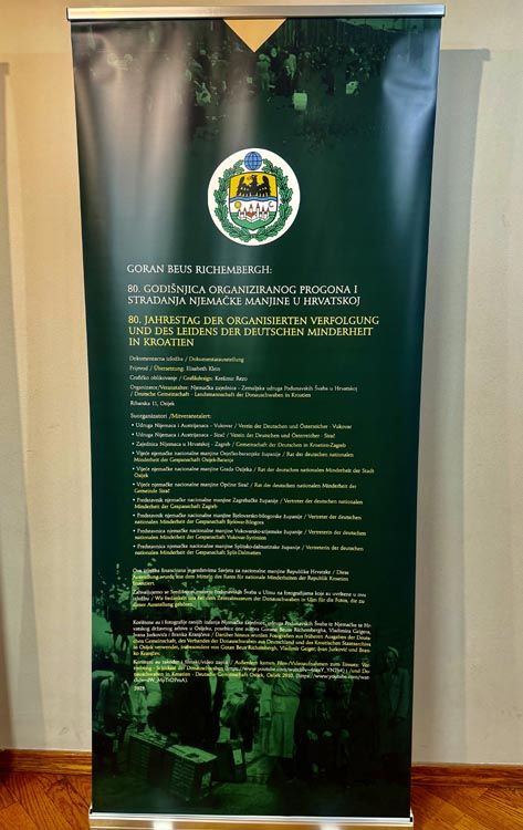 U vijećnici Pučkog otvorenog učilišta i Galeriji Trumbetaš, u četvrtak 9. listopada, održano je predavanje i otvorena dokumentarna izložba „80. godišnjica organiziranog progona i stradanja njemačke manjine u Hrvatskoj“, čiji je autor i predavač Goran Beus Richembergh. Program je okupio brojne posjetitelje, među kojima i službene predstavnike nacionalnih manjina Zagrebačke županije: Mirelu Beko (romska zajednica), Dragišu Pilipovića (srpska), Andreja Pavlešena (ukrajinska) i Saliha Huremovića (bošnjačka zajednica).