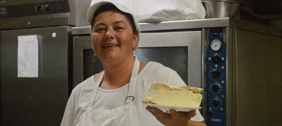 Dok smo ulazili u kuhinju, radilo se punom parom. Kupci su stalno pristizali, jer su ih očito iz staklenih vitrina mamili raznovrsni kolači spravljeni od vrijednih učenica. Htjeli smo vidjeti kako spretne ruke dviju kuharica spravljaju slasticu kojoj je tako teško odoljeti. Poznato je da se jede topla, pa čak i vruća.