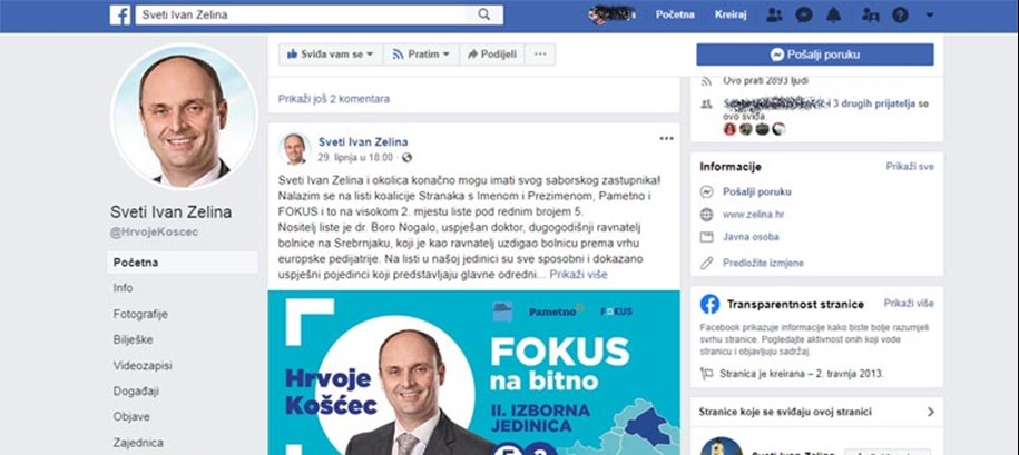 U objavljivanju političkog sadržaja ništa ne bi bilo sporno da je objavljen pod imenom i prezimenom Hrvoja Košćeca, no to ovdje nije slučaj. Iako možda i sam vodi spomenutu Facebook stranicu ili je njezin administrator, ona je u javnosti percipirana kao službena stranica Grada Svetog Ivana Zeline i kao takva, trebala bi služiti isključivo informiranju građana o za njih bitnim pitanjima u koje ne spada sadržaj političke samopromocije u doba izborne kampanje.