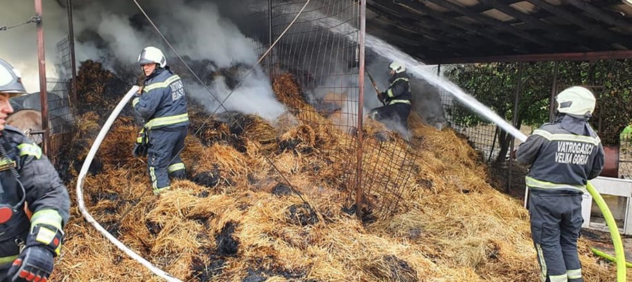 U Vukvini kraje Velike Gorice jučer u 9:50 bukno je požar u sklopu gospodarskog objekta u kojem je nagoreno nekoliko poljoprivrednih strojeva, više bala sjena, metalna konstrukcija i krovište.