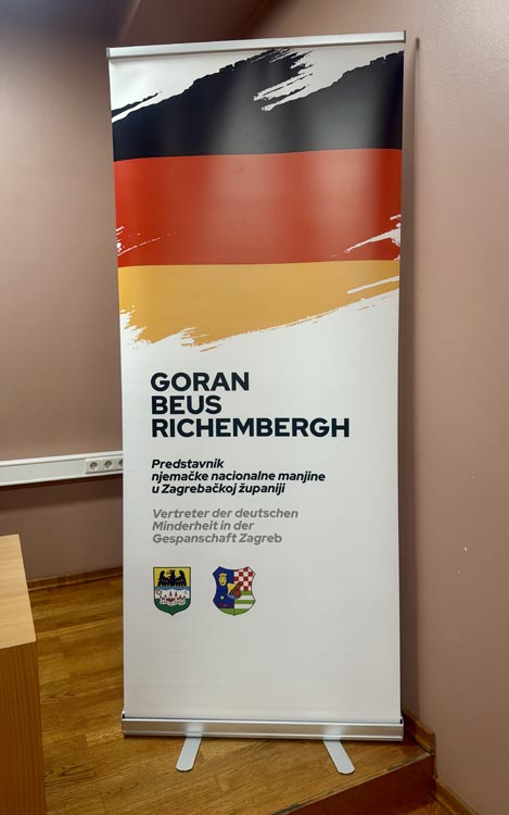 Beus Richembergh je okupljenima približio malo poznato poglavlje domaće povijesti, od dolaska njemačkih obitelji na ove prostore, njihova doprinosa industrijskom, kulturnom i znanstvenom razvoju Hrvatske, pa sve do teških godina nakon Drugog svjetskog rata kada su tisuće pripadnika njemačke manjine protjerane, raseljene ili zatočene u logorima. Govorio je o prešućenim činjenicama, arhivskoj građi, ali i osobnim pričama, s mješavinom dokumentarističke preciznosti i iskrene ljudske potrebe da se ta priča napokon ispriča.