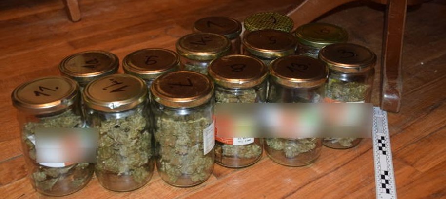 Pretragom stana u kojem je osumnjičeni boravio policijski službenici pronašli su 13 staklenki u kojima se nalazio ukupno 332,1 gram marihuane i jednu plastičnu vrećicu s 0,3 grama marihuane te digitalnu vagu s tragovima marihuane.