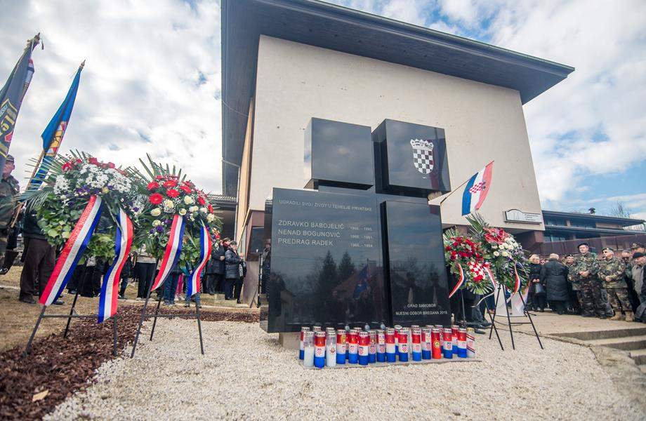Spomenik su otkrili i prvi zapalili svijeće ispred njega članovi obitelji trojice branitelja, nakon čega su vijence i svijeće, pod protokolom Samoborske narodne garde, položili i upalili ministar, gradski i županijski čelnici te ostala izaslanstva.