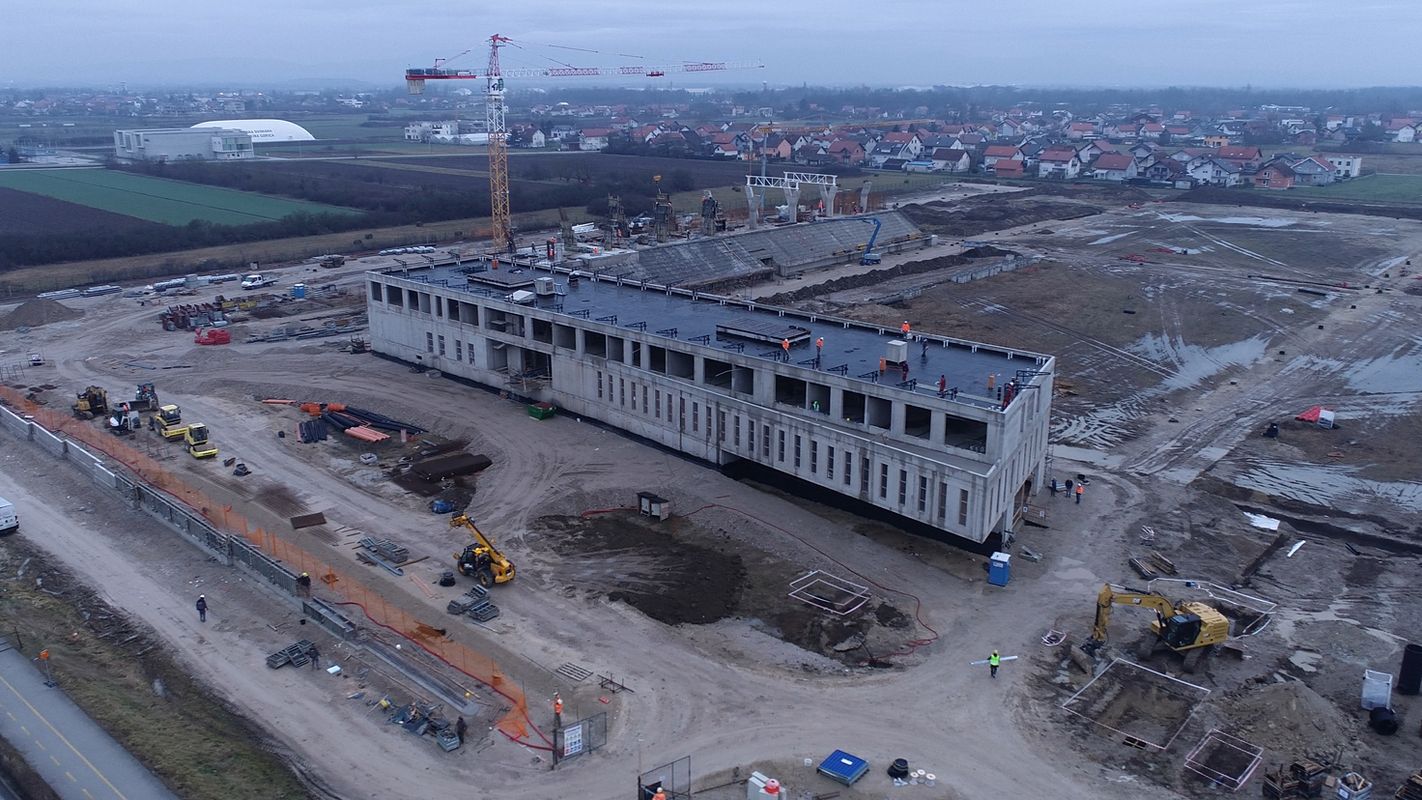 Na budućem stadionu dovršeni su gotovo svi armiranobetonski radovi, dok je u tijeku izvedba armiranobetonske konstrukcije sjedećeg dijela tribina. Izvedena je većina armiranobetonskih stupova za prihvat čelične krovne konstrukcije natkrivanja tribina, kao i trakasti temelji prilaznog pješačkog mosta za pristup stadionu, dok su radovi na njegovim nadzemnim elementima u tijeku.